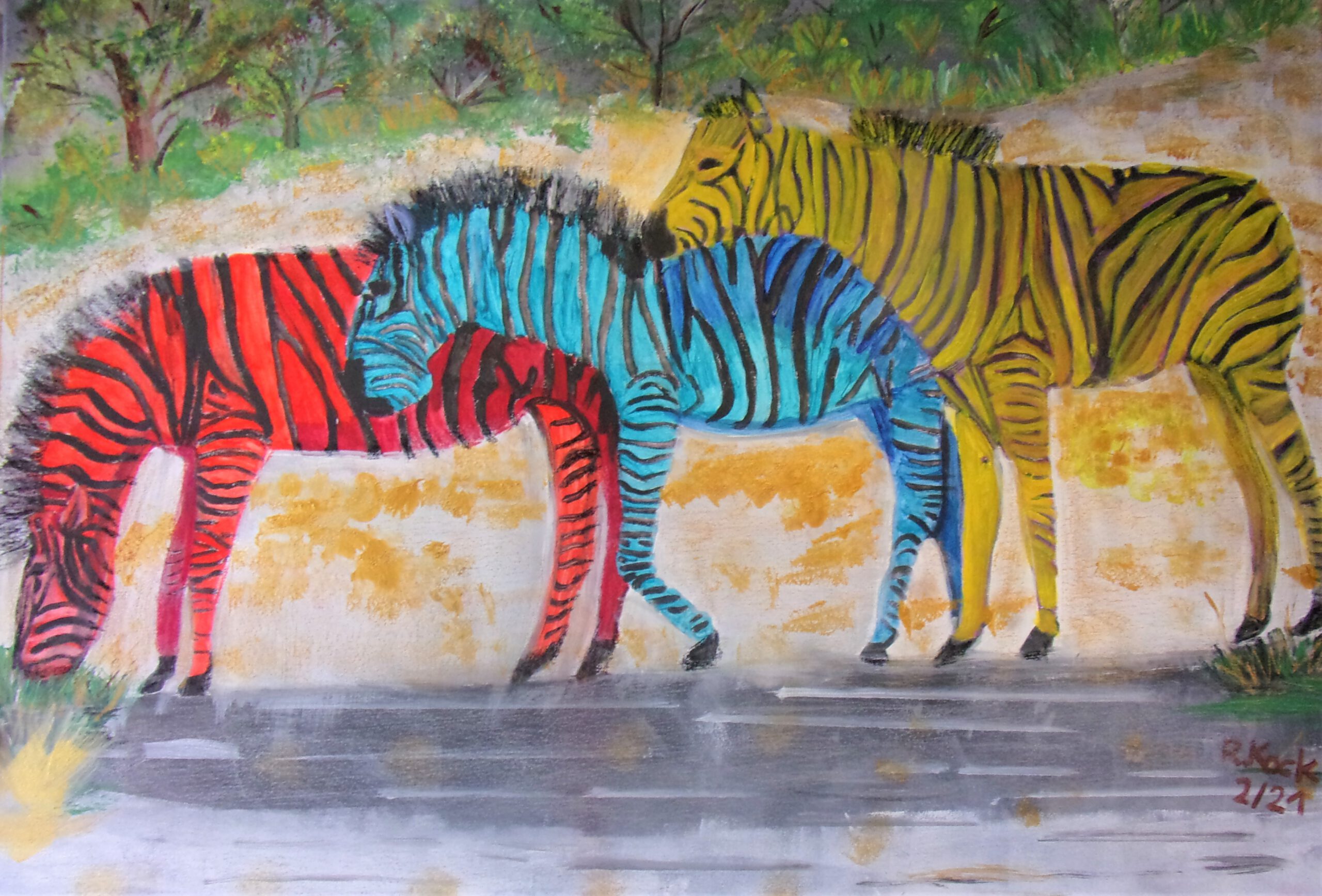 Während eines Reha- Aufenthalts 2013 stand wöchentlich Kunsttherapie auf dem Programm. Verschiedene Mal- und Farbtechniken konnte ich ausprobieren. Beim Malen konnte ich mich gut vertiefen und entspannen. Das blieb auch der Therapeutin nicht verborgen. Sie meinte: „Du musst bitte weiter malen, das tut dir gut!“